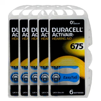 Ensure your hearing aids stay powered with the Duracell Size-675 Hearing Aid Battery. This pack contains 5 strips, totaling 30 batteries, providing long-lasting and reliable performance. Compatible with all standard Size-675 hearing aids, these batteries are easy to install and help deliver clear, uninterrupted hearing every day.